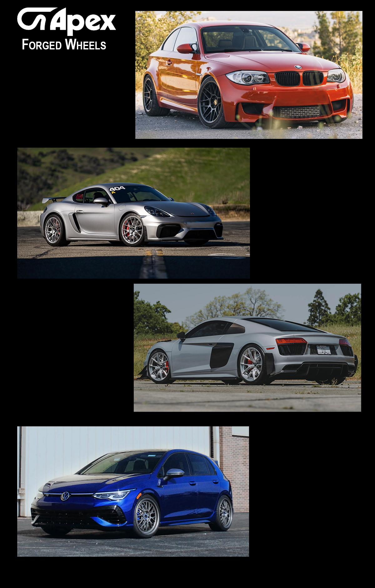 APEX introduces several new FORGED wheels. These are new and improved versions of many of their classic flow form wheel designs, but now fully FORGED. Beautifully crafted details, exclusive finish options, plus all the features APEX is known for.