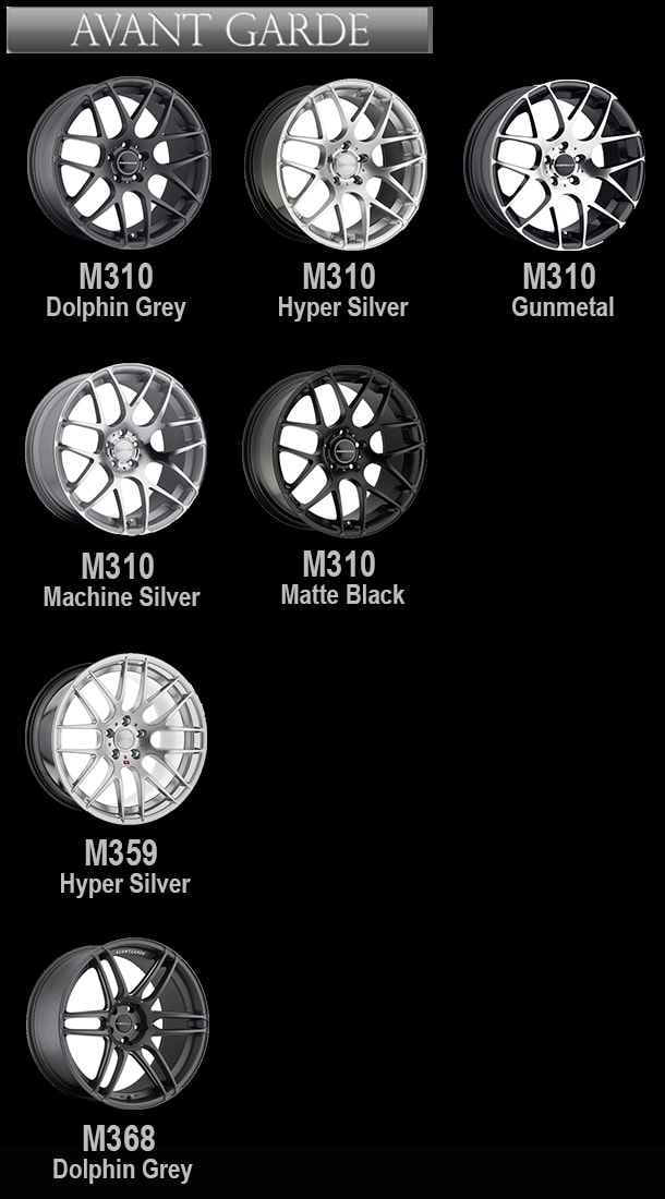 BRracing has lots of experience selling, installing and providing fitments of Avant Garde Wheels. Avant Garde Wheels are guaranteed flawless straight from the factory! With perfect fitment and evenly coated finish. Both the “M” Series and the “Ruger” Series are low pressure cast, increasing the quality and decreasing the weight when compared to gravity cast wheels. The Avant Garde Wheels are also stronger with a higher load rating than most other low pressure cast wheels on the market today. Finally, the price point of the Avant Garde Wheels can not be beat….great looks, great fitment, and great price.