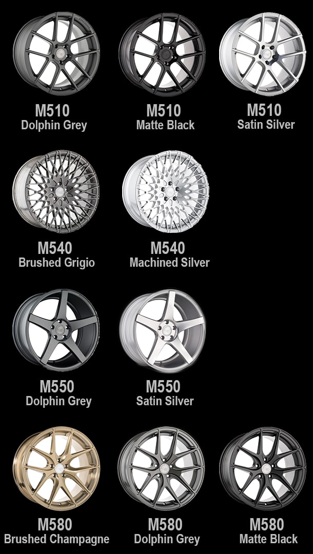 M540 = 19 and 20″ only, bolt hole patterns = 5×112, 5×114.3 (Audi, Mercedes only)