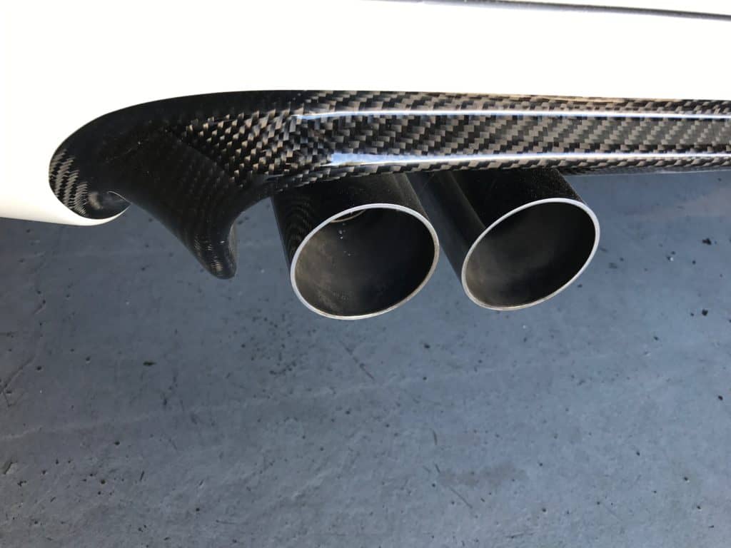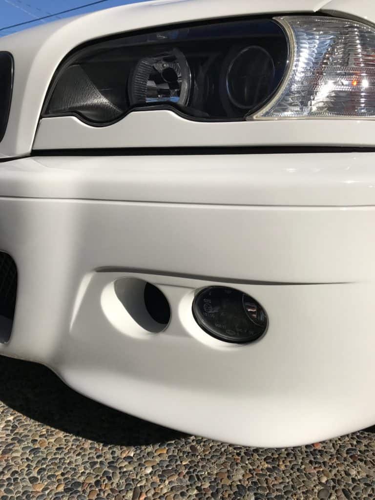 When we did our first BMW E46 M3 project car, there were other body elements a plenty, but today, some of those parts have more or less disappeared from the market (at least from the quality suppliers)…items like the vented Carbon Fiber front hood, Carbon Fiber CSL door panels, Carbon Fiber rear trunk lid w integrated CSL lip. But, some of the items you can still do, even custom elements. We loved the look on our first BMW E46 M3 of our front bumper w “plastic welded” integrated brake ducts…and this is still possible, so we opted for that look again. We can get Status Gruppe rear Carbon Fiber diffuser to go around the upgraded exhaust…so, that too was added.