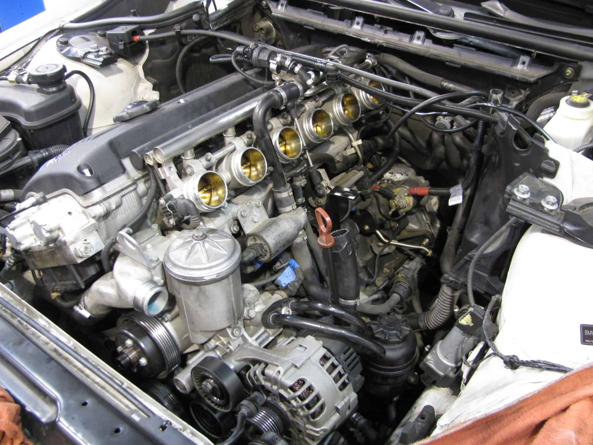 Most know that the BMW E46 S54 is susceptible to rod bearing issues. Our donor engine already had 80k miles on it, so before we were going to start adding enhancements, we wanted to make sure the base package was strong and robust. Any of the known wear items (water pump, thermostat, oil filter housing gasket, idler bearing, tensioner pulley / bearing, belts, AC tensioner, oil pan gasket, CPV valve, oil pump, coolant hoses, radiator, valve cover gasket)….all got replaced with new. Some of the parts were being changed for other types of parts (intake manifold, intake boots, exhaust) as part of the upgrade process. So, out w the old…