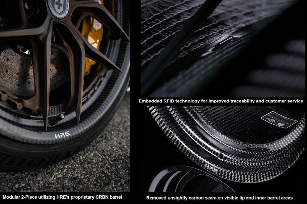 HRE’s CRBN® program uses the latest materials and manufacturing technologies to set a new standard in carbon fiber wheels. Relying on HRE’s 40+ years creating high performance wheels, CRBN® raises the bar in wheel performance and quality. These new two-piece wheels will feature the CRBN® rim joined to the forged aluminum centers with high-strength titanium fasteners. Customers will have the option to choose a “Frozen” Satin or Gloss clear coat on the CRBN® rim itself and any of HRE’s custom finishes for the forged center.