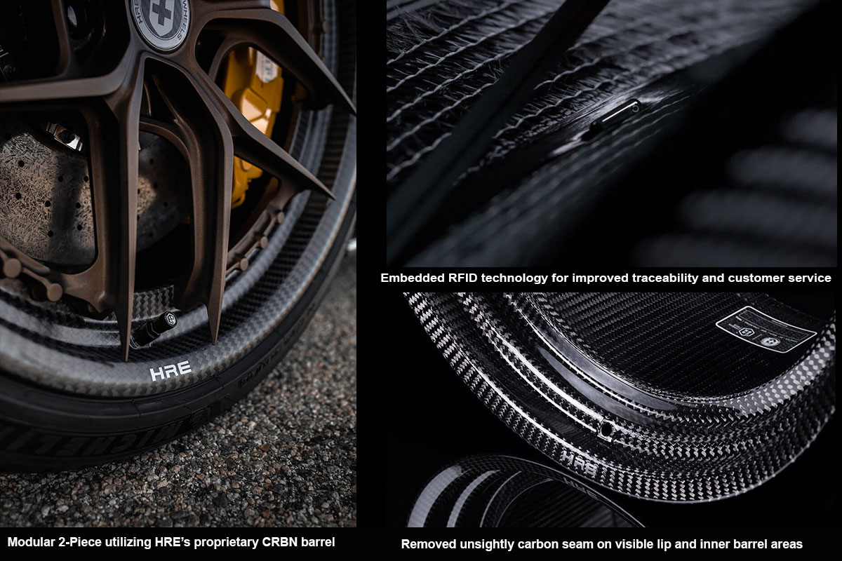 HRE’s CRBN® program uses the latest materials and manufacturing technologies to set a new standard in carbon fiber wheels. Relying on HRE’s 40+ years creating high performance wheels, CRBN® raises the bar in wheel performance and quality. These new two-piece wheels will feature the CRBN® rim joined to the forged aluminum centers with high-strength titanium fasteners. Customers will have the option to choose a “Frozen” Satin or Gloss clear coat on the CRBN® rim itself and any of HRE’s custom finishes for the forged center.
