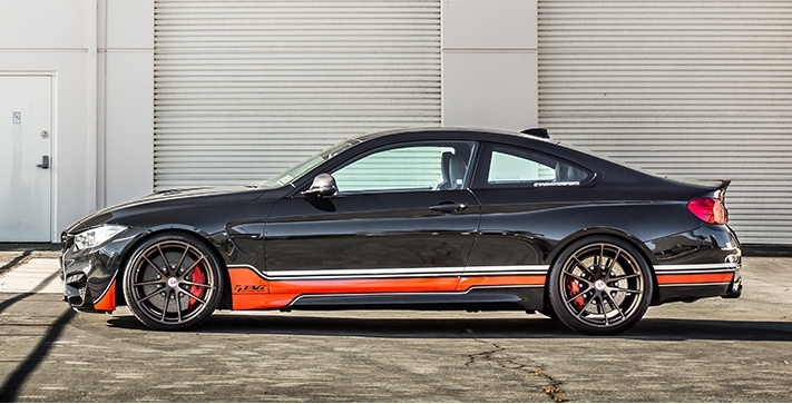 On a new BMW F8x M3 or M4, these new height adjustable springs allow the car to be lowered;