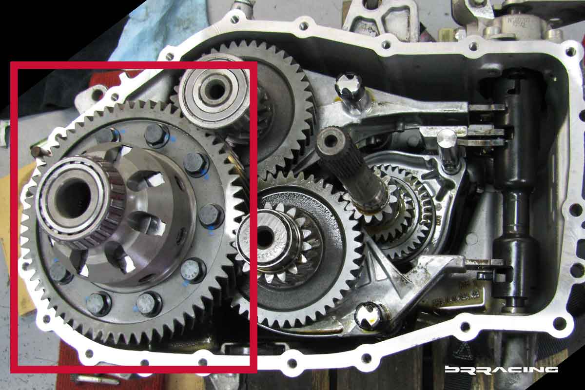 With the desire to put the power down, and the potential of more HP from the engine, we needed to add an LSD (limited slip differential), and the perfect time with the engine / transmission out of the car. Separating the transmission from the engine provides easy access to the differential.