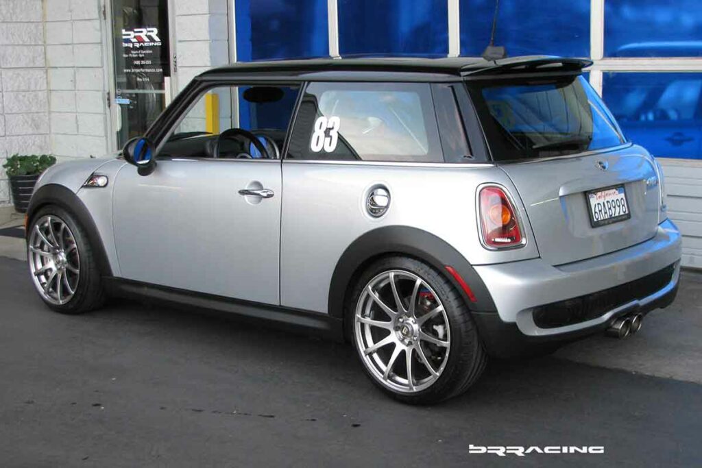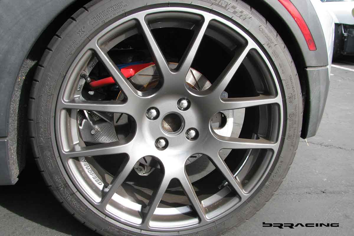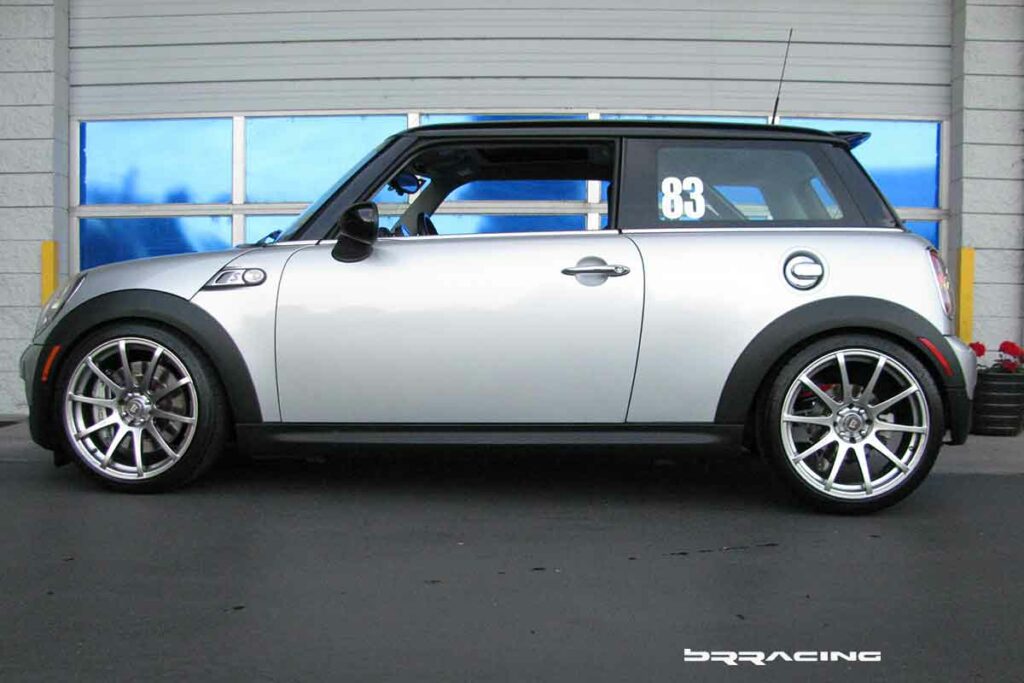The MINI is such a great handling car to begin with, that there is not a lot of improvements that are needed at the initial stages of DE use. The car is flat, handles much like a go-kart, but like almost all front wheel drive cars, it has a touch of understeer. This is easily addressed. The MINI just needs a slight upgrade of the rear sway bar. This little addition will help the car to easily rotate when initial steering input is given…but don’t get carried away here w the thought that bigger must be better. There are a wide range of sway bars for the rear of the MINI – 19mm, 20mm, 21mm, 23mm, and even a monster 25mm bar. You ONLY want the 19mm bar. Anything more, and the car over rotates on initial turn in, and makes the car a handful when driving…and reduces the stability of the car, and makes it very twitchy, even just when taking off ramps on the freeway. So, if you are doing this upgrade to your car, just go w the 19mm rear bar. The bar comes complete (ALTA) w upgraded sway bar bushings. For hard core DE users, we would recommend upgrading the sway bar end links as well.
