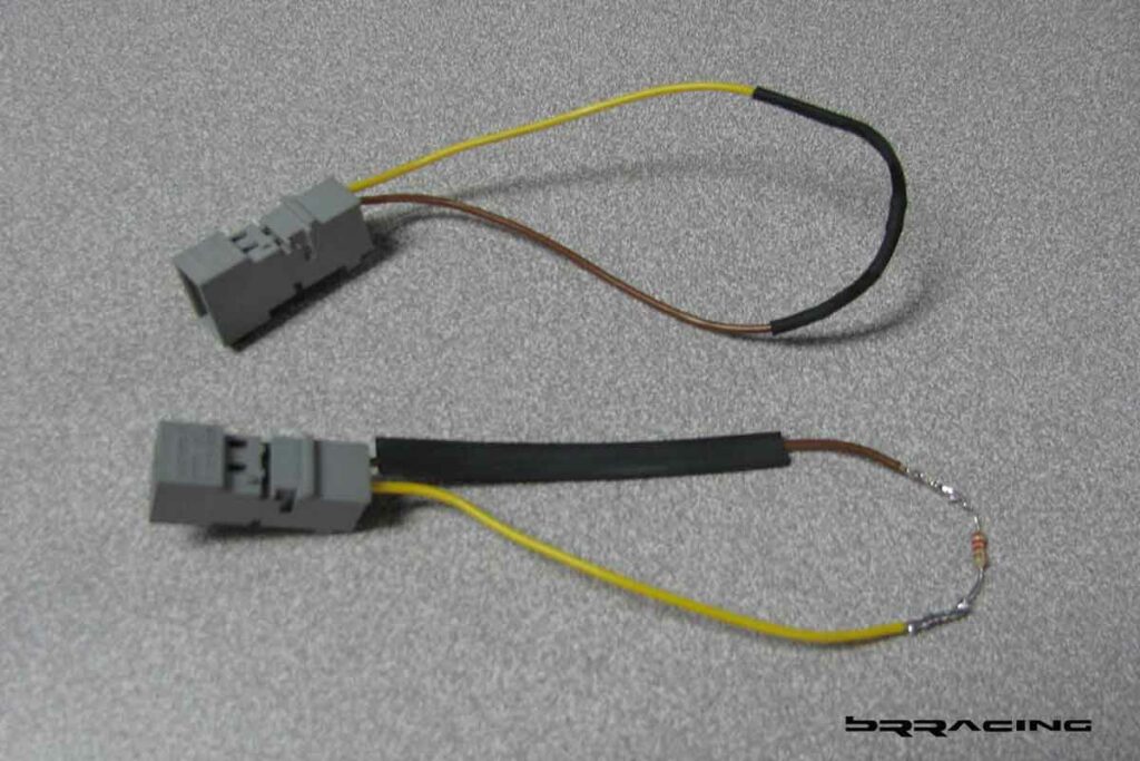 Next…the airbag. Now, we can’t install the side cushion airbags from the OEM seat into the new seat, but we can make the car think they are there. All we need to do is make a new wiring harness that duplicates the OEM airbag harness and electrical equation. Once you know the values of the voltage and resistance drop under the various operating and start-up conditions, you can make your own wiring harness. One piece of the harness BRracing made is seen here.