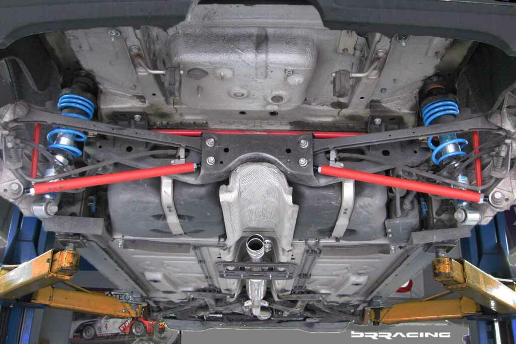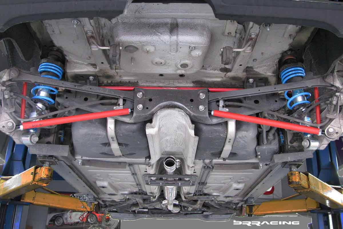 Another area that can use some attention is the strength or torsional rigidity of the front body. The underbody brace you see below helps tie the front subframe to the main body.