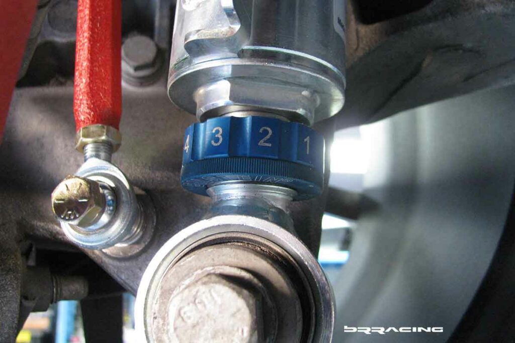 Note the big, easy to see and reach shock valve adjustment knob. Many of the coil-over manufacturers make adjustable shocks, but put the adjustment knob somewhere that you can’t reach….like, on the MINI, on the rear shock, they put it on top, which is completely hidden.